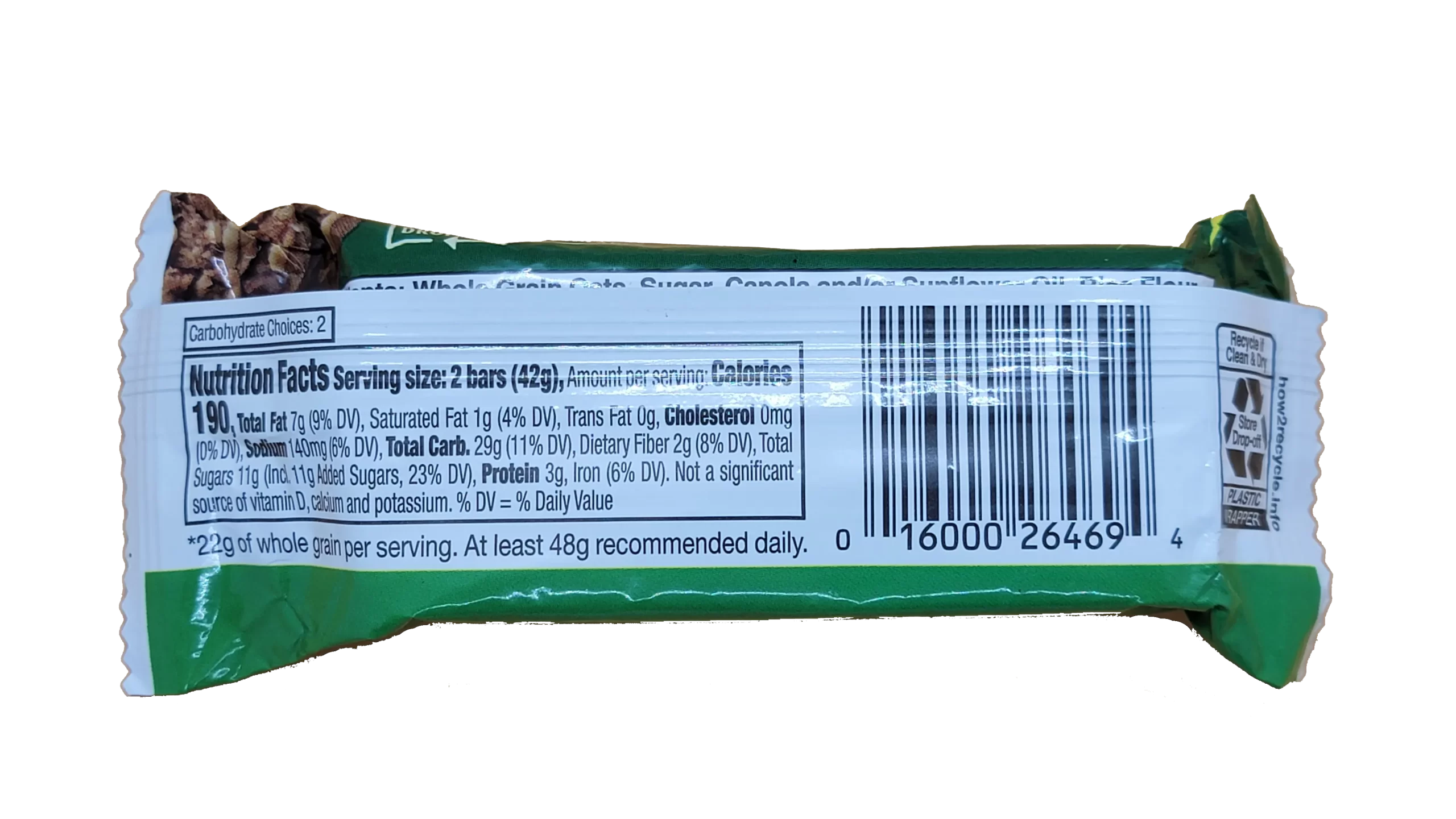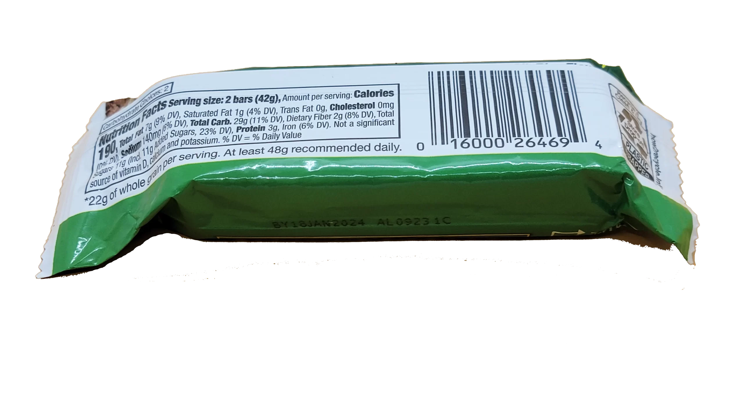 Ingredientes: avena integral, azúcar, aceite de canola, harina de arroz, miel, sal, jarabe de azúcar moreno, bicarbonato de sodio, lecitina de soya, sabor natural.
