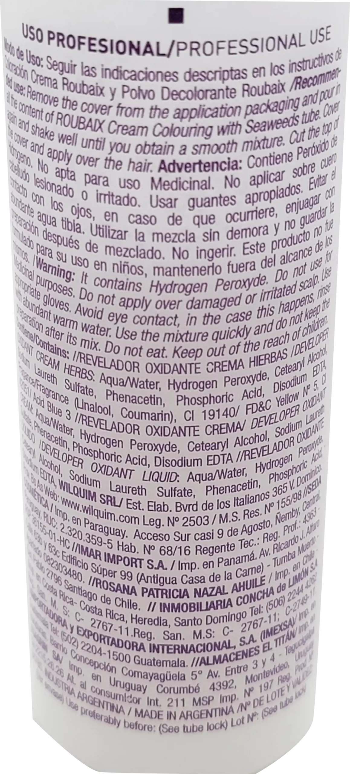 Advertencia: Contiene Peróxido de Hidrogeno. No apta para uso Medicinal.